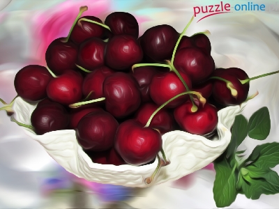 Puzzle Miseczka, Grafika, Wiśnie, Listek