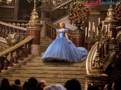 Suknia, Niebieska, Kopciuszek, Cinderella, Lily James, Film, Dziewczyna, Schody, Aktorka