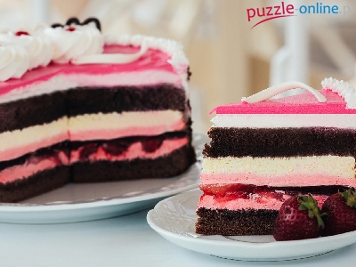 Puzzle Truskawki, Tort, Kawałek, Talerzyk