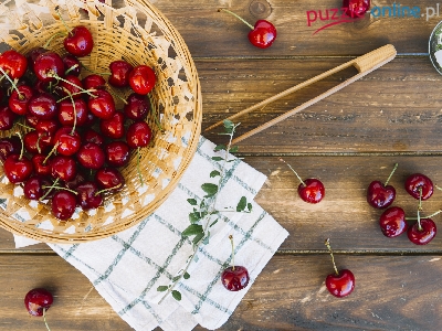 Puzzle Deski, Czereśnie, Koszyk, Ścierka