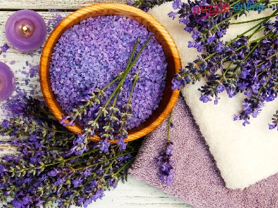Świece, Sól, SPA, Lawenda wąskolistna, Miseczka, Ręcznik