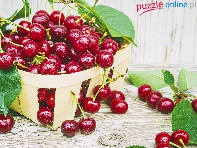 Liście, Krople, Owoce, Wiśnie, Koszyk