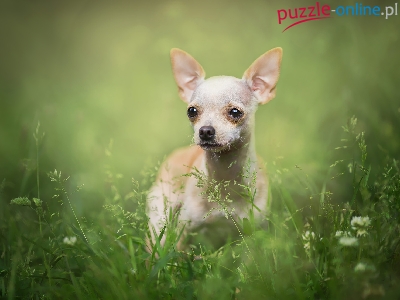 Puzzle Chihuahua krótkowłosa, Pies, Trawa