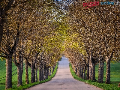 Szpalery, Aleja, Drzewa, Wiosna, Droga