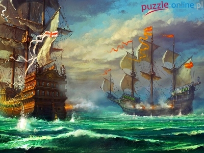 Puzzle Batalia, Żaglowce, Morze, Obraz
