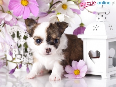 Chihuahua, Kosmea, Pies, Szczeniak, Kwiaty