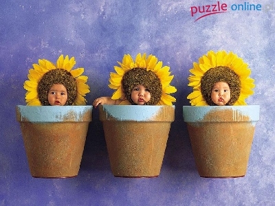 Puzzle Doniczki, Trzy, Bobaski, Słoneczniki