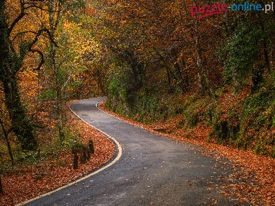 Puzzle Liście, Jesień, Drzewa, Droga