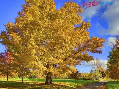 Puzzle Drzewa, Jesień, Chmurki, Droga