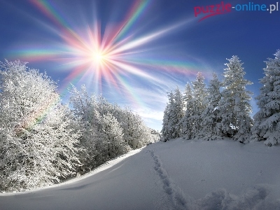 Puzzle Drzewa, Zima, Promienie słońca