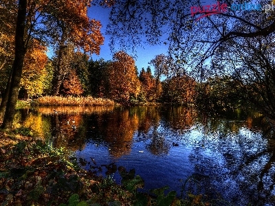 Drzewa, Park, Ptaki, Jesień, Staw, Kaczki