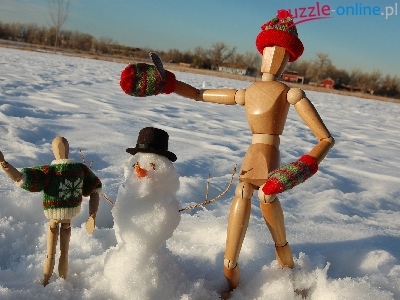 Puzzle Dwa, Śnieg, Bałwan, Roboty