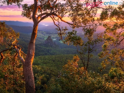 Gałęzie, Wschód słońca, Drzewa, Queensland, Góry, Numinbah Valley, Australia, Dolina
