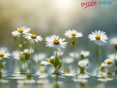 Puzzle Kwiaty, Margerytki, Białe, Grafika