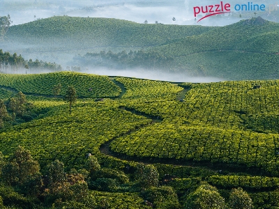 Wzgórza, Herbaty, Plantacja, Mgła, Drzewa