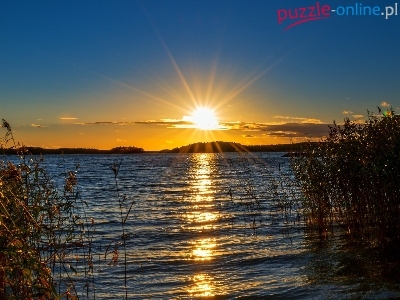 Puzzle Jezioro, Zachód, Słońca, Szuwary