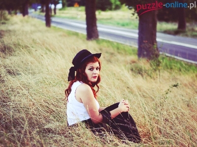 Kapelusz, Pole, Kobieta, Ruda, Droga
