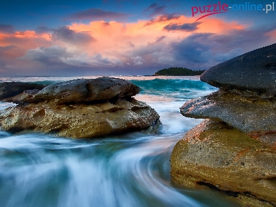 Puzzle Kolorowe, Morze, Skały, Chmury