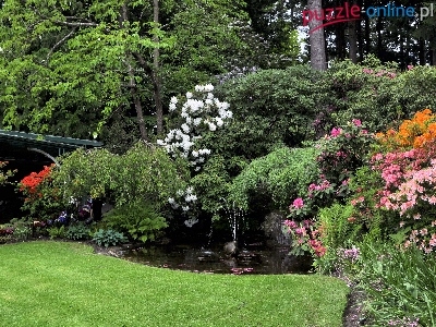 Krzewy, Piękne, Wodne, Ogród, Kwitnące, Oczko