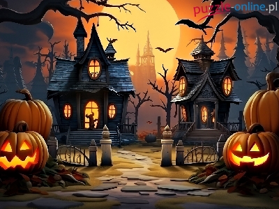 Dynie, Księżyc, Domy, Grafika, Halloween