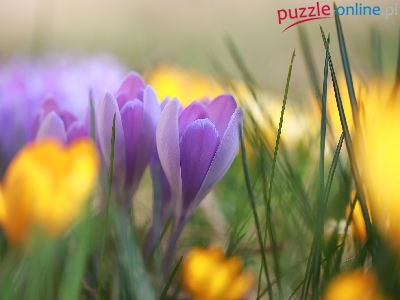 Puzzle Fioletowe, Krokusy, Dwa, Kwiaty