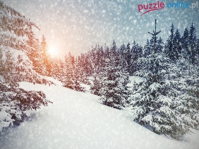 Puzzle Las, Zima, Śnieg, Wschód słońca