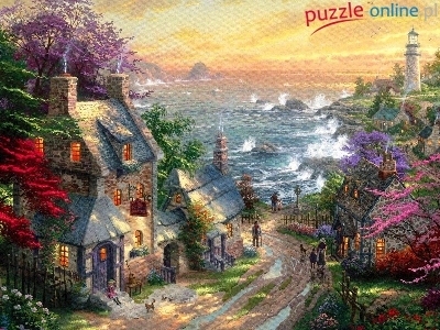 Puzzle Latarnia Morska, Domy, Wybrzeże, Thomas Kinkade