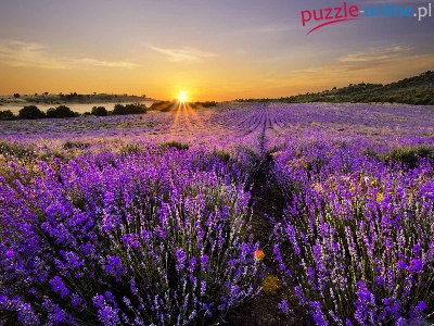 Puzzle Lawendowe, Zachód, Słońca, Pole