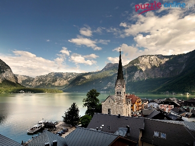 Puzzle Miasteczko, Jezioro, Góry, Kościółek