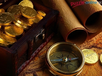 Puzzle Mapy, Monety, Kompas