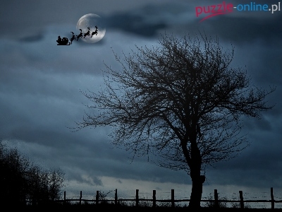 Narodzenie, Sanie, Drzewo, Mikołaj, Boże, Zima