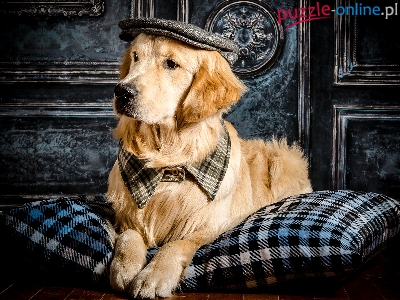 Puzzle Czapka, Pies, Golden retriever, Poduszka