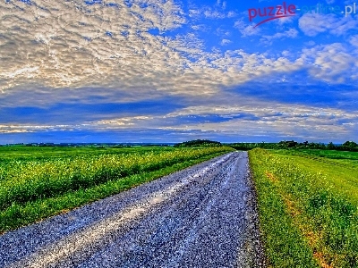 Puzzle Pola, Chmury, Droga, Lato