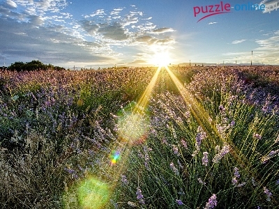 Puzzle Promienie, Zachód, Słońca, Lawenda
