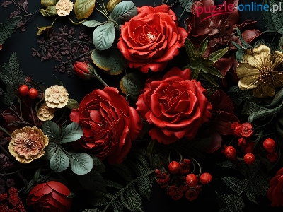 Puzzle Czerwone, Kwiaty, Grafika, Róże