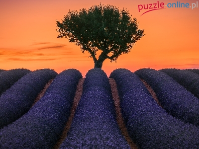 Lawenda, Prowansja, Francja, Valensole, Drzewo, Pole