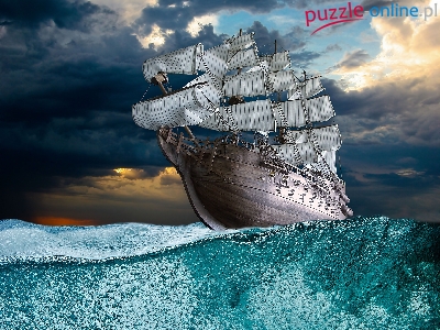 Puzzle Woda, Statek, Żagle, Niebo