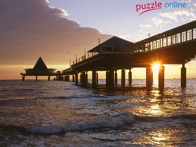 Puzzle Zachód, Morze, Molo, Słońca