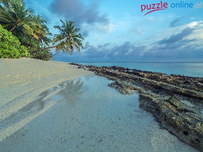 Południowy atol, Palmy, Plaża, Malediwy, Kamienista, Wyspa Dhoores, Morze, Drzewa