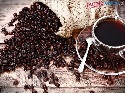 Talerzyk, Ziarna, Kawa, Worek, Łyżeczka, Filiżanka