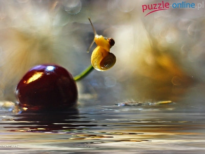 Puzzle Ślimak, Czereśnia, Owoc, Woda