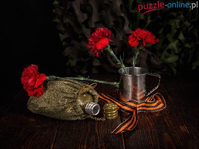 Kubek, Manierka, Kwiaty, Goździki, Wstążka