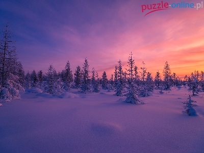 Puzzle Zachód słońca, Zima, Las, Drzewa