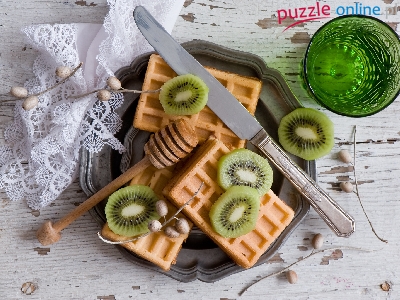 Gofry, Szklanka, Kiwi, Owoc, Nóż