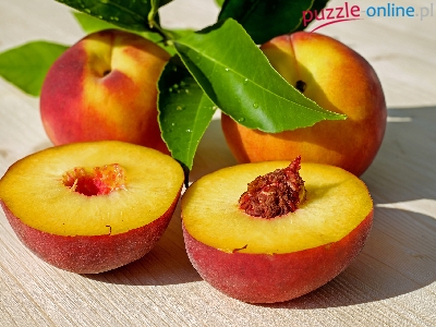 Puzzle Połówki, Owoce, Brzoskwinie, Listki