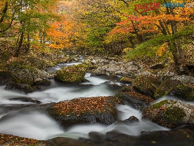 Las, Kamienie, Liście, Rzeka, Jesień, Drzewa, Opadłe