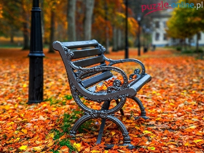 Opadłe, Park, Jesień, Ławka, Drzewa, Liście