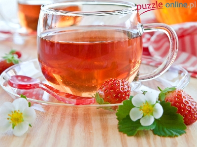 Puzzle Truskawki, Filiżanki, Herbaty, Rozmycie