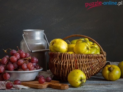 Kanka, Jabłka, Wiklinowy, Koszyk, Winogrona