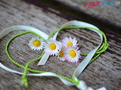 Puzzle Serce, Kwiatki, Stokrotki, Sznurek